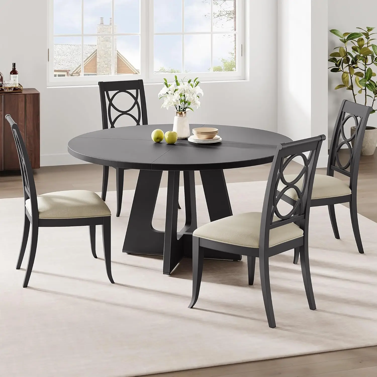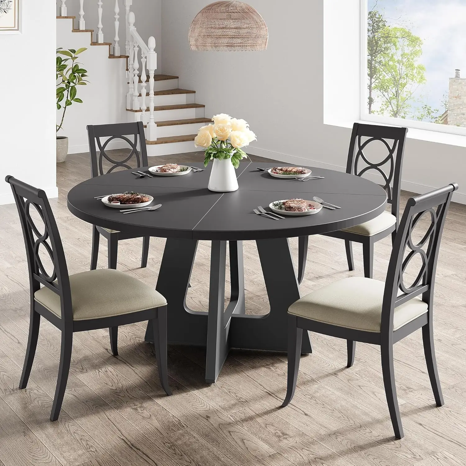 120 x 120 x 53 cm Round Dining Table for 4-6 People Space Saving Rustic Wooden Kitchen Table with Wood Base and Tabletop Black