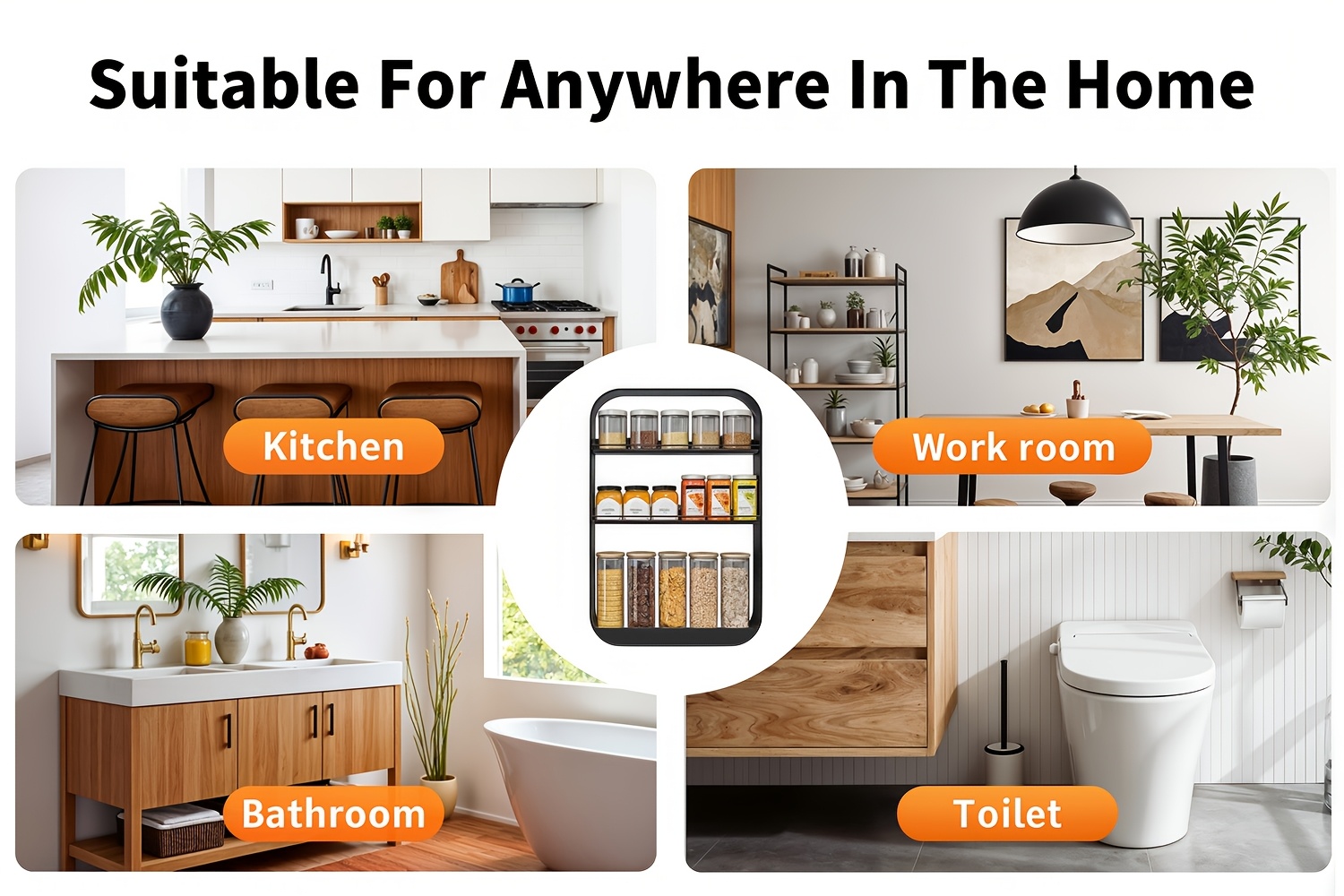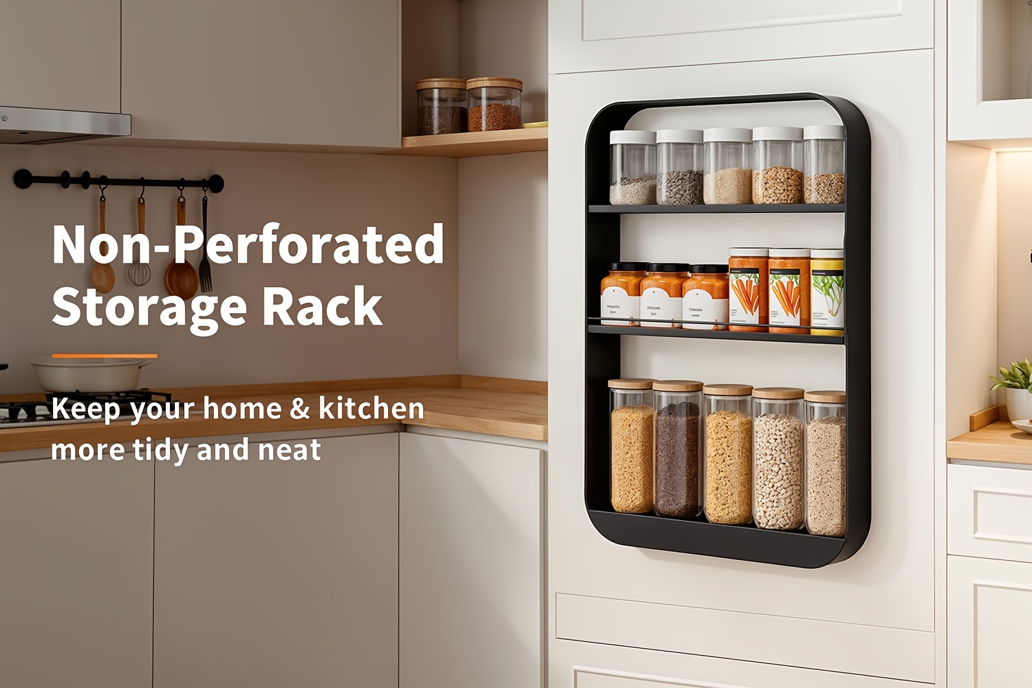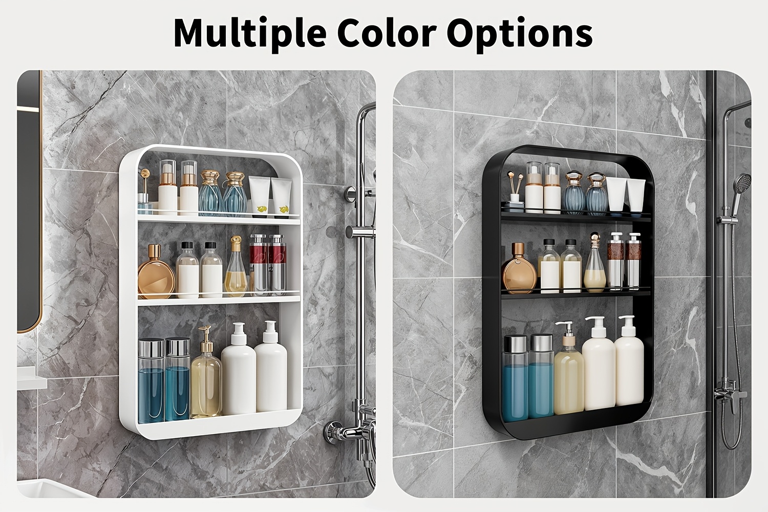 15.7 × 23.6 Inch No Punching Wall-Mounted Storage Shelf - Multi-tier Organizer for Kitchen and Bathroom, Heavy-Duty Construction, 56 Lb Load Capacity, 3-Tier Large Storage, Perfect for Spices, Toiletries, and Miscellaneous I
