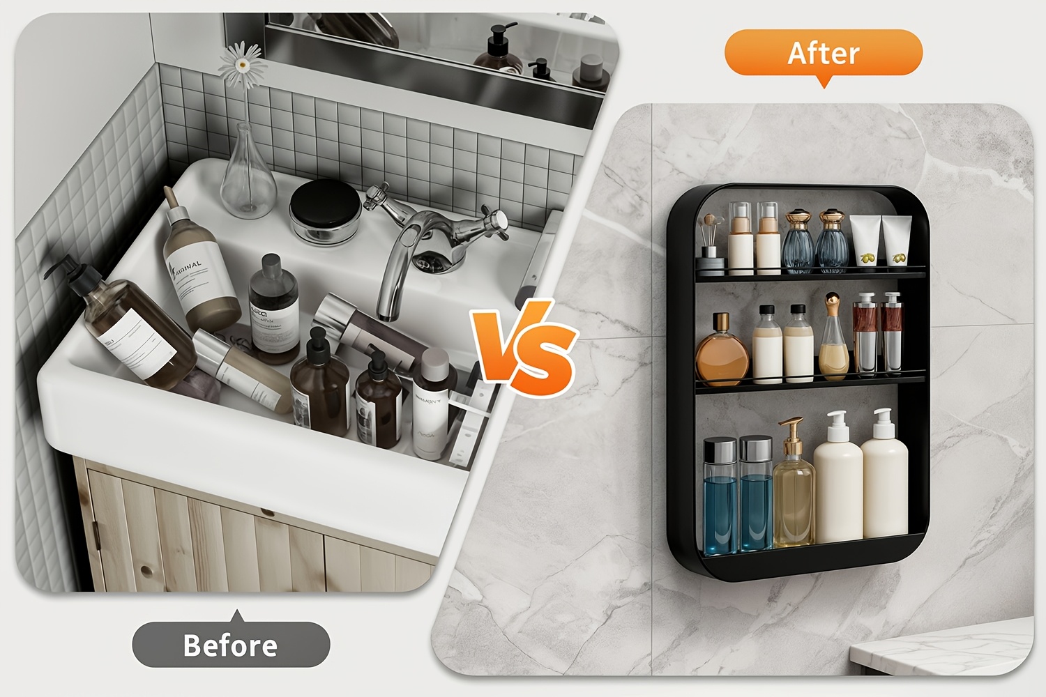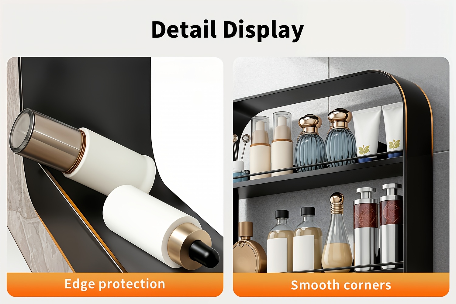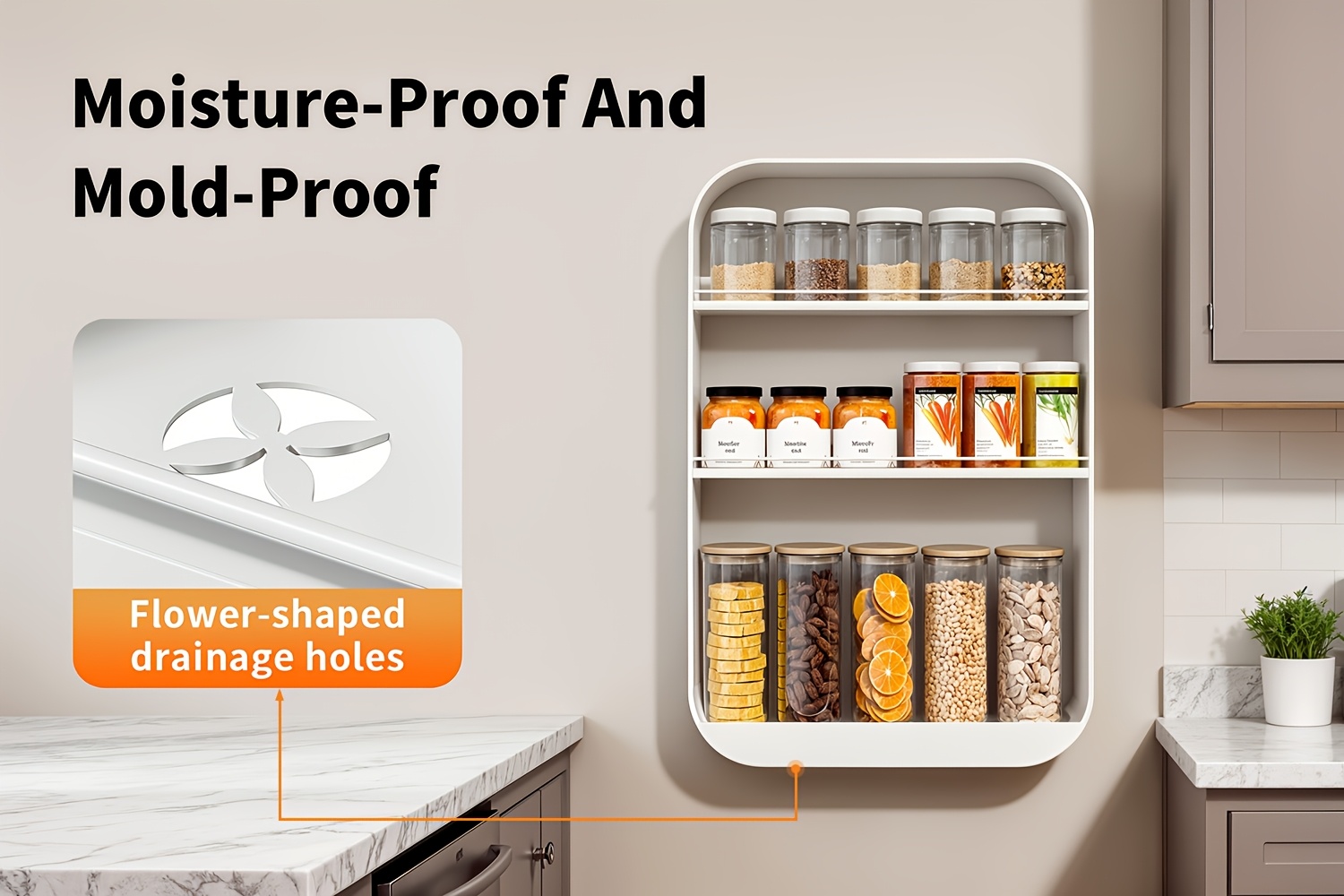 15.7 × 23.6 Inch No Punching Wall-Mounted Storage Shelf - Multi-tier Organizer for Kitchen and Bathroom, Heavy-Duty Construction, 56 Lb Load Capacity, 3-Tier Large Storage, Perfect for Spices, Toiletries, and Miscellaneous I