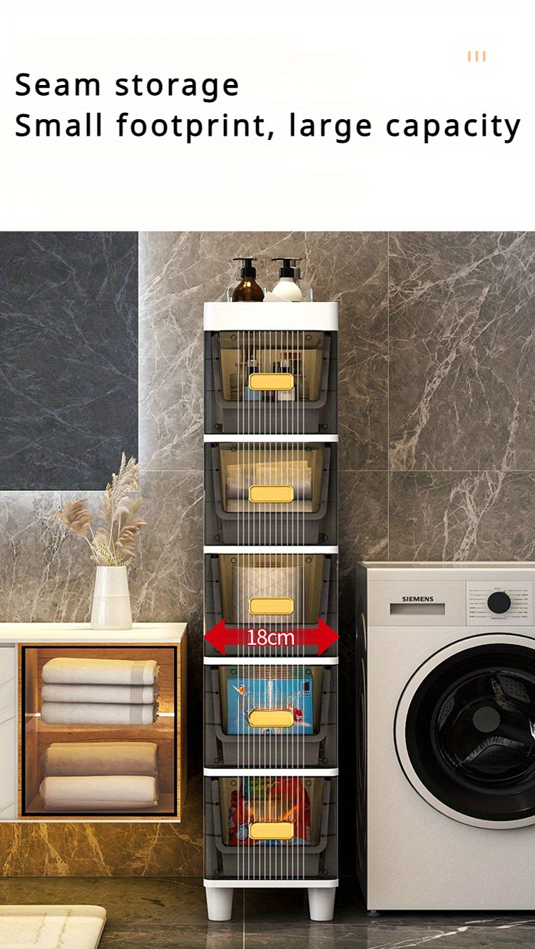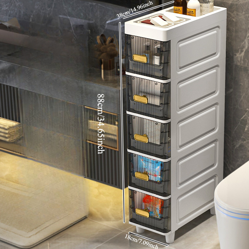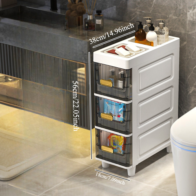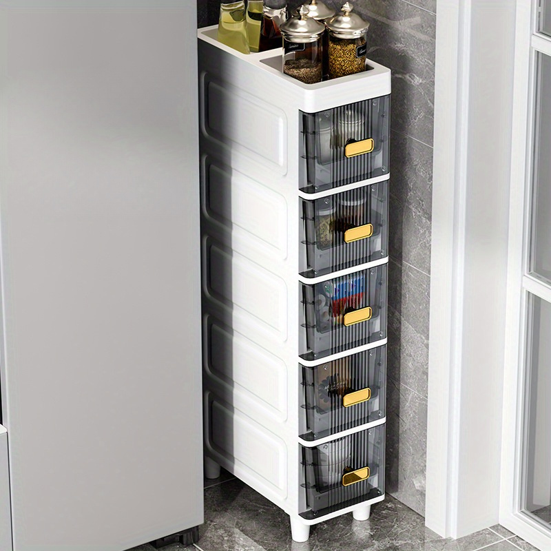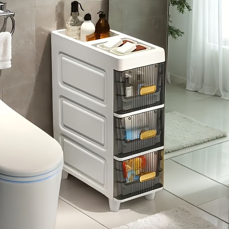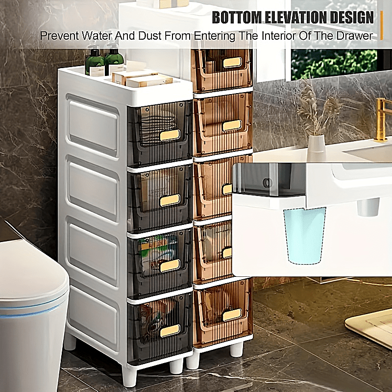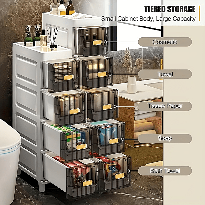 Deluxe Slim Storage Cabinet with Drawers - Durable Waterproof PP Material, Multi-Purpose Organizer with Ample Storage for Bathroom, Kitchen, Personal Care Product Dispensers, and More - Ideal for Small Spaces, Storage Drawer