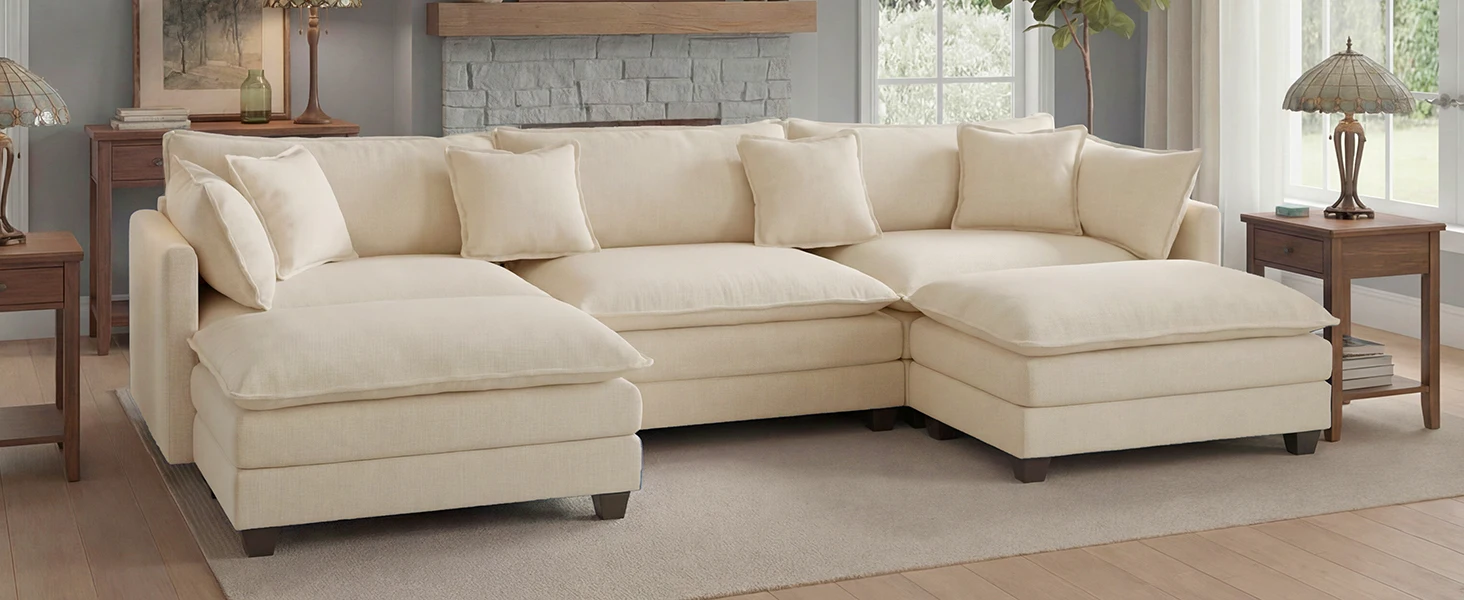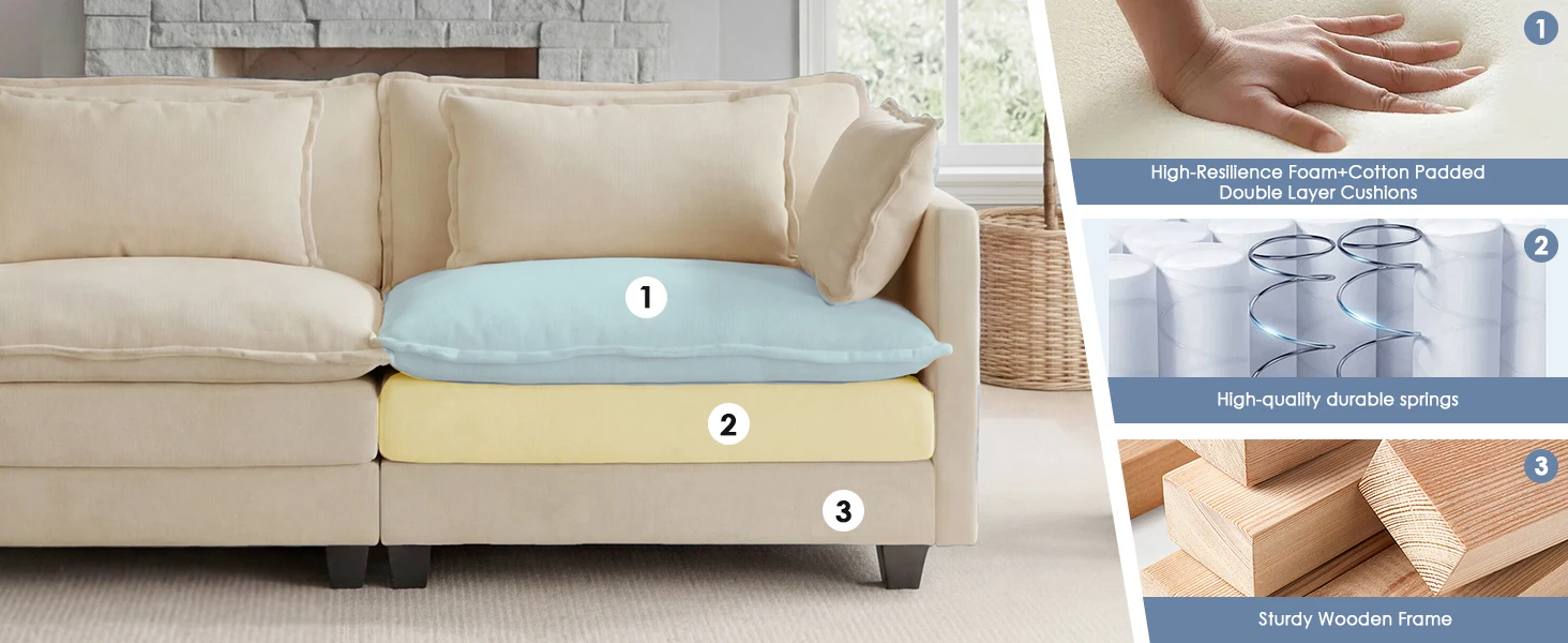 【Innovative Cloud Comfort】Double-layer Semi-Memory Foam cushions + full foam backrest + spring pocket base, offering perfect balance of softness and support for long-time sitting without fatigue.