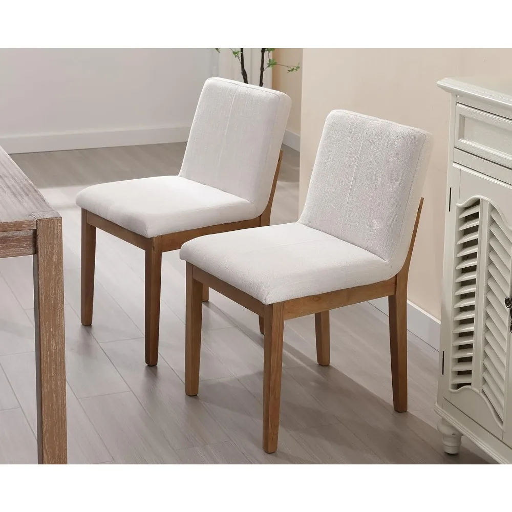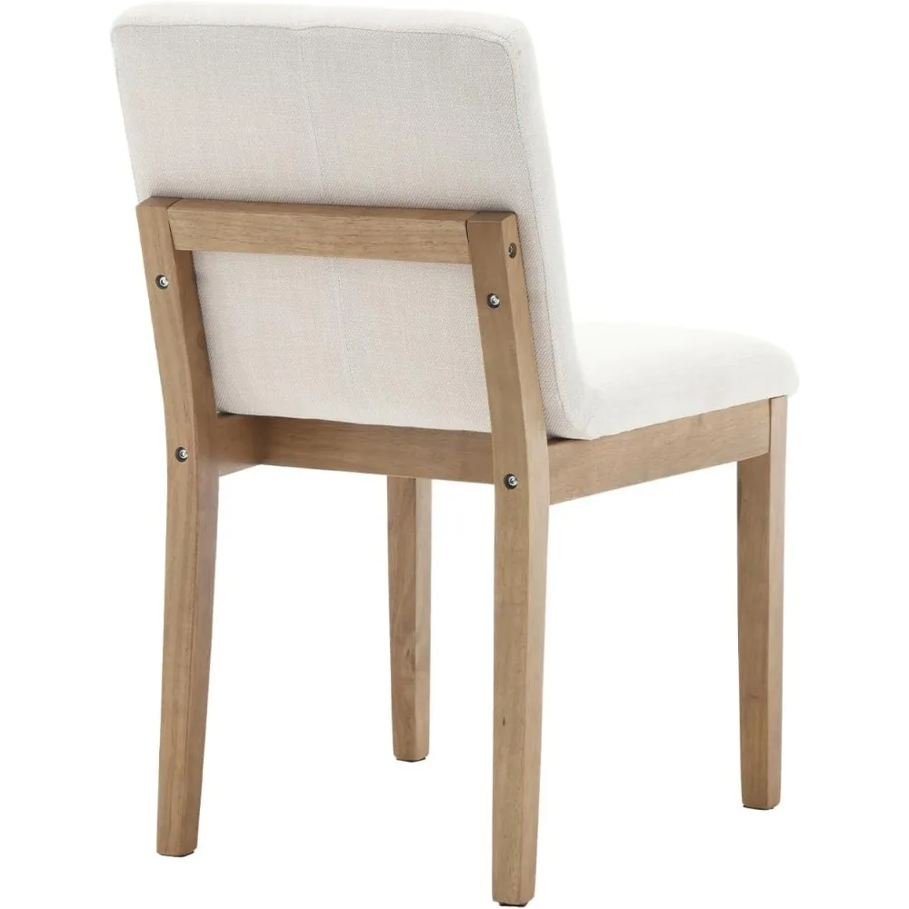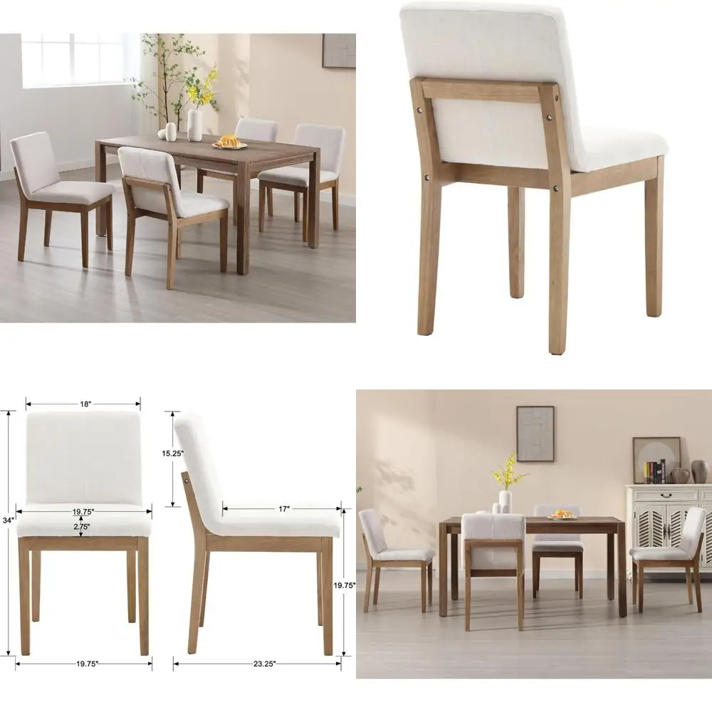 Set of 4 Kmax Modern Dining Chairs, Upholstered Armless with Linen Fabric, Wood Side Chairs for Dining and Kitchen, Beige